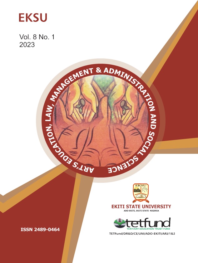 EKSU Journal of Nigeria Inquiry in the Humanities (NIITH) is a biannual Journal published by Ekiti State University, Office of Research, Development and Innovation. The Journal aims at periodically exhibiting and advertising the potential of research results within and outside the university as well as promoting dissemination of intellectual publications generally. The Journal, which is multidisciplinary and multicultural in nature, covers the Arts, Social Sciences, Education, Law, Management and Administration. It serves as a platform for academicians, researchers, professionals, practitioners and students in the Humanities to impart and share knowledge in the forms of high quality practical, empirical and theoretical research papers, case studies, literature review and book reviews etc. from all over the world.